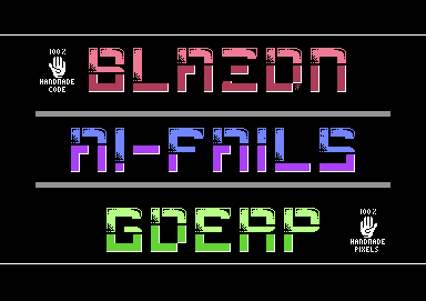 | Credits: | Code Freeze of Blazon Music Proton of Finnish Gold Graphics Freeze of Blazon Goerp of Fantastic 4 Cracking Group, Hokuto Force and Pixel Punx DirectoryArt Steveboy of Blazon Baracuda of Blazon, Smash Designs, The Stock and C64.CH Linking Freeze of Blazon Unspecified Baracuda of Blazon, Smash Designs, The Stock and C64.CH |